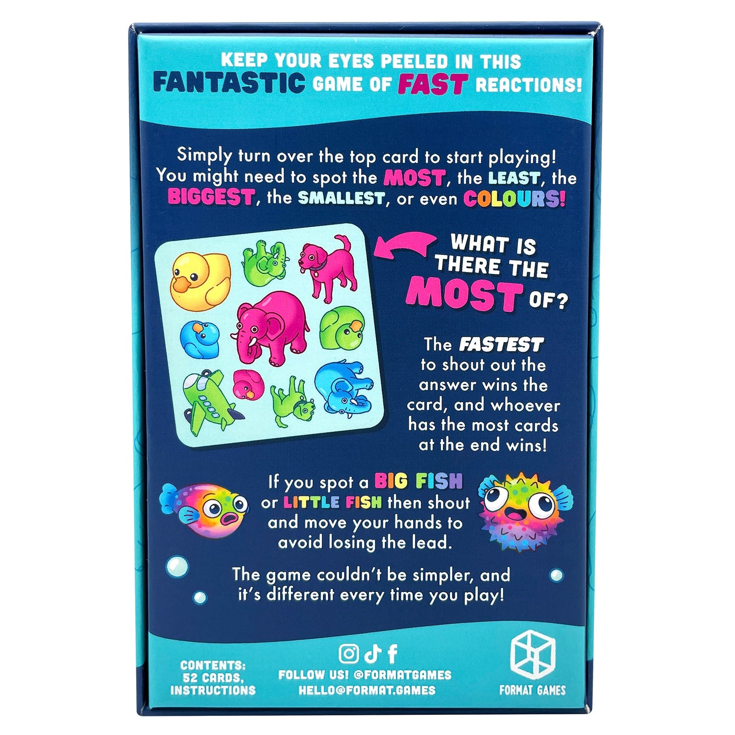 - REPLAYABILITY: With 6 different rules that can change with each card played, Big Fish Little Fish offers endless variability, ensuring no two games are the same.