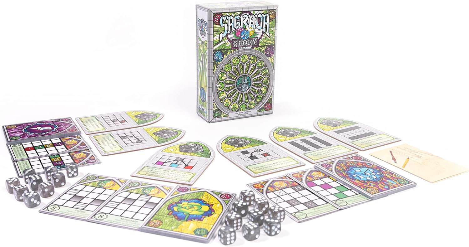 Return to the famous Sagrada Familia cathedral in Sagrada: Glory, the third and final of the Great Facades expansions. This modular expansion explores the thrill of competition and rivalry—add everything inside or handpick modules to enhance your crafting experience.