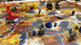 Each player begins the game with different resources (power, coins, combat acumen, and popularity), a different starting location, and a hidden goal. Starting positions are specially calibrated to contribute to each faction’s uniqueness and the asymmetrical nature of the game (each faction always starts in the same place).