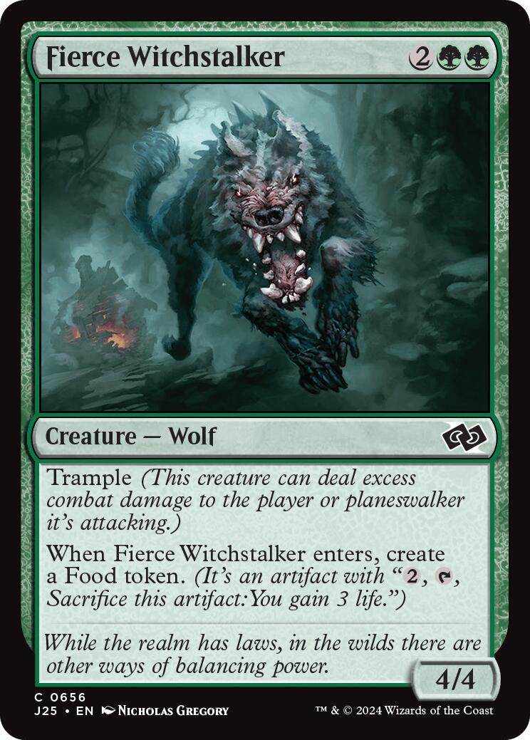 - Rules Text Contains: Trample <em>(This creature can deal excess combat damage to the player or planeswalker it's attacking.)</em> <br> When Fierce Witchstalker enters, create a Food token. <em>(It's an artifact with "2, T, Sacrifice this artifact: You gain 3 life.")</em>