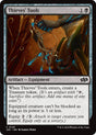 - Rules Text Contains: When Thieves' Tools enters, create a Treasure token. <em>(It's an artifact with "T, Sacrifice this artifact: Add one mana of any color.")</em> <br>Equipped creature can't be blocked as long as its power is 3 or less. <br>Equip 2 <em>(2: Attach to target creature you control. Equip only as a sorcery.)</em>