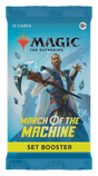 Each March of the Machine Set Booster contains 12 Magic cards, 1 Art Card, and 1 token/ad card, Helper card, or card from “The List” (a special card from Magic's history—found in 25% of packs).
