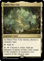 - Rules Text Contains: As Three Tree City enters, choose a creature type. <br>T: Add C. <br>2, T: Choose a color. Add an amount of mana of that color equal to the number of creatures you control of the chosen type.