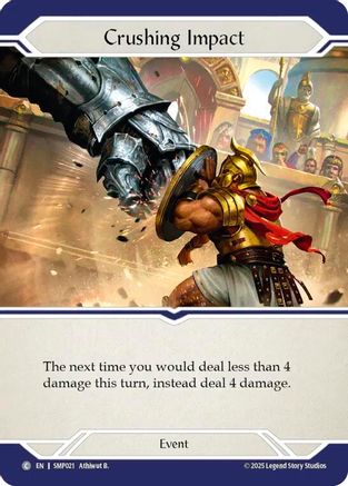 The next time you would deal less than 4 damage this turn, instead deal 4 damage.