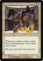 - Rules Text Contains: Whenever a player cycles a card, Stoic Champion gets +2/+2 until end of turn.